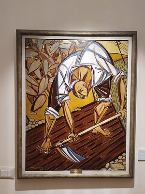 Giuseppe Migneco (né le 9 février 1903 (Wikipedia indique 1908 par erreur) à Messine et mort le 28 février 1997 à Milan) est un peintre italien majeur du XXᵉ siècle.Après des études classiques dans sa ville natale, il s’installe à Milan en 1931 pour étudier la médecine, tout en débutant sa carrière artistique.