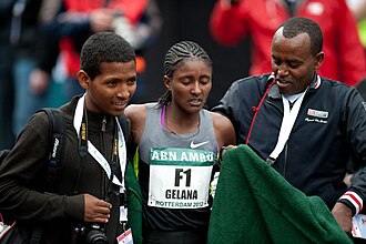 Erba Tiki Gelana (née le 22 octobre 1987 à Bekoji) est une athlète éthiopienne spécialiste du marathon.Elle se distingue au début des années 2010 en remportant notamment les marathons d’Amsterdam en 2011 et de Rotterdam en 2012. La même année, elle atteint le sommet de sa carrière en remportant la médaille d’or aux Jeux olympiques de Londres avec un nouveau record olympique.