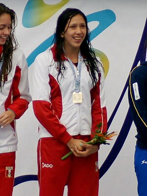 Andrea Cedrón, née le 24 décembre 1993 à Trujillo, est une nageuse professionnelle péruvienne. Surnommée « la sirène péruvienne », elle est la fille de Carlos Cedrón Medina et Jessenia Rodríguez Lescano, et a une sœur prénommée Gianella. Formée à l’Institución Educativa Particular Inmaculada Virgen de La Puerta, elle s’est imposée comme la meilleure représentante de la natation féminine de son pays. |