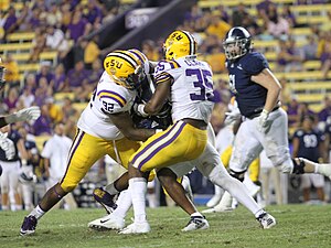 Neil Farrell Jr., né le 9 septembre 1998, est un joueur professionnel américain de football américain, évoluant au poste de nose tackle. Il a joué au niveau universitaire avec les LSU Tigers avant d’être sélectionné par les Las Vegas Raiders au quatrième tour de la draft NFL 2022. |