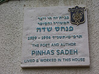 Pinchas Sadeh, également écrit Pinhas Sadeh, né en 1929 à Lemberg en Pologne (maintenant Lviv en Ukraine) et mort le 29 janvier 1994 à Jérusalem, est un écrivain et poète israélien d’origine polonaise. Il naît sous le nom de Pinhas Feldman dans la région de Galicie avant que sa famille n’émigre en Palestine mandataire en 1934, où elle s’installe à Tel Aviv.